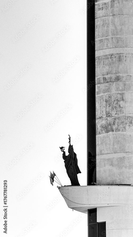 Statue of Pope John Paul II at modern church in Krakow, Poland - minimalist black and white photo