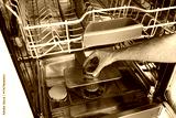 Repairing a broken dishwasher in a modern kitchen setup by a skilled professional