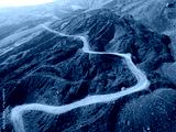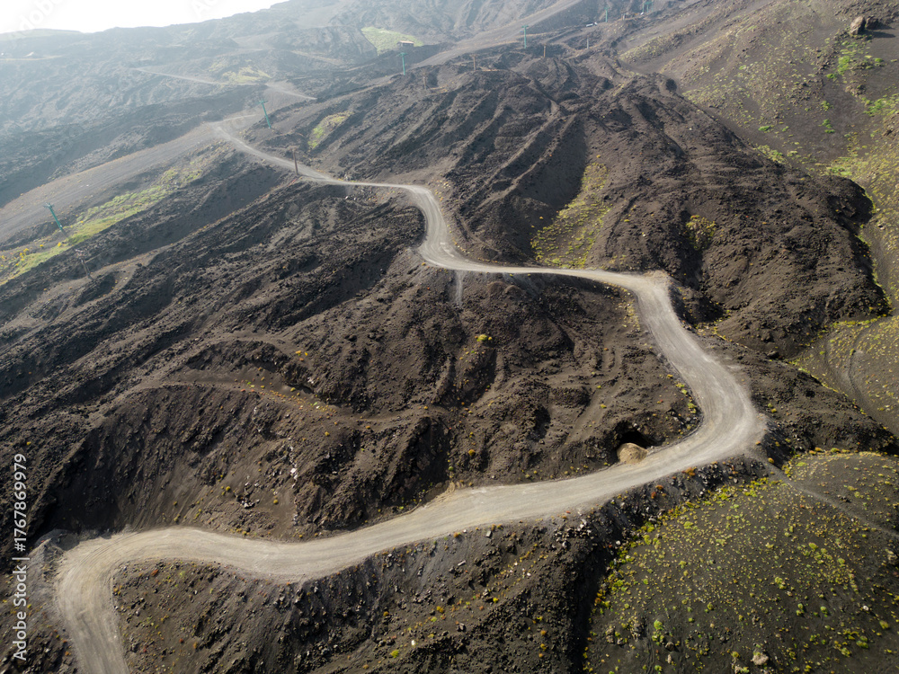 An all-wheel drive truck driving a gravel road at Mount Etna, Sicilie