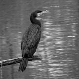 The great cormorant, Phalacrocorax carbo sitting on a branch
