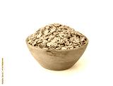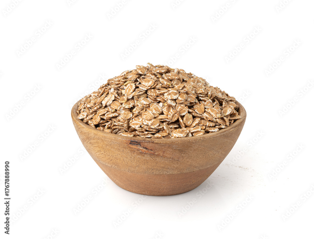Spelt flakes isolated, dry raw rolled flat oat grains, wheat, oatmeal or bran, barley rye cereals