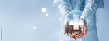 Medicine doctor, Healthcare and medical professional, Doctor hand holding pack of different tablet, Physician consulting patient about pills, Medical service to solve people health.