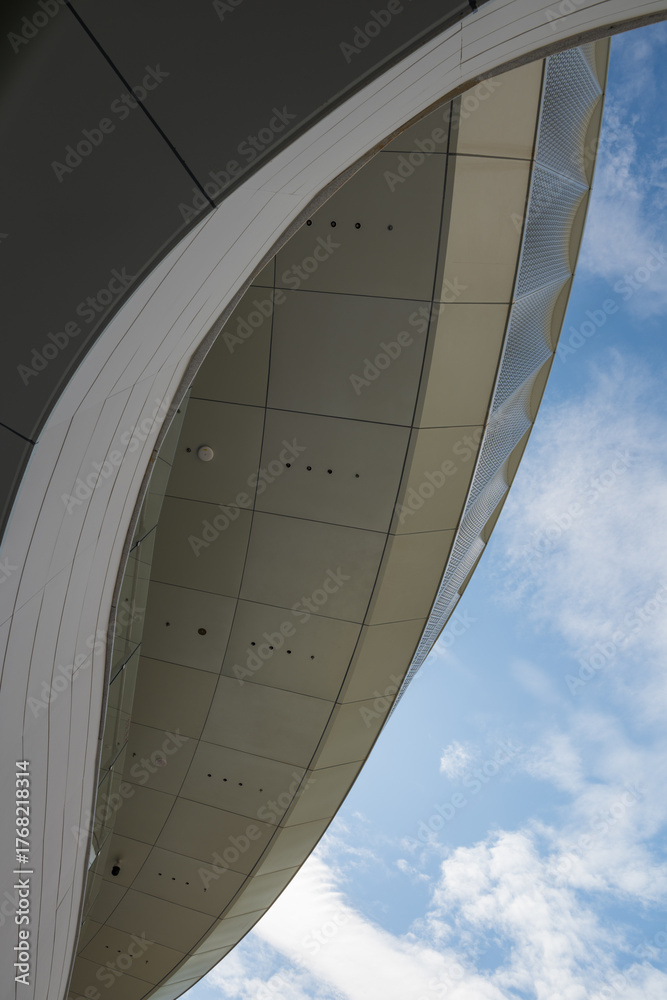Modern Curved Architecture Detail With Sky and Cloud Perspective
