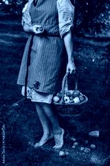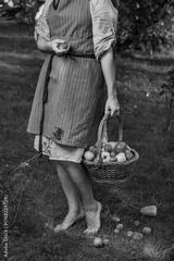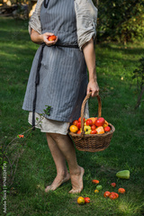 woman holding a basket with ripe tomatoes and peppers in the garden