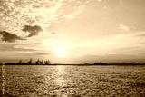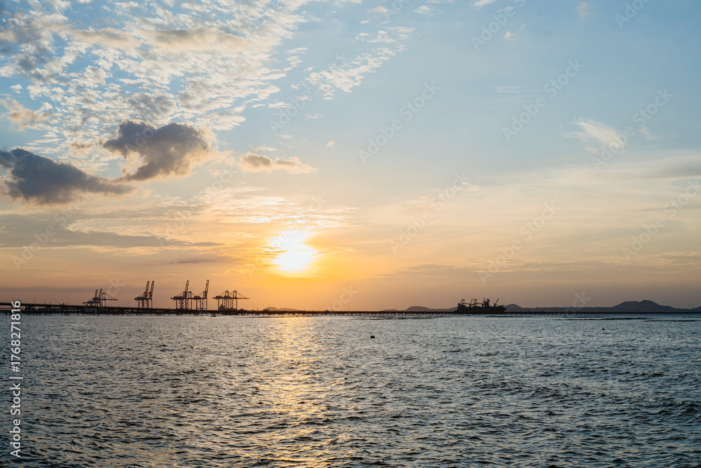 Beautiful sunset over the sea in the evening, peaceful seascape with warm golden light.