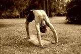Engaging in a dynamic yoga pose amidst the beauty of nature while practicing backbend techniques