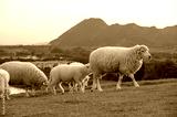 Herd of sheeps living in rural area of Chiang Rai province, Thailand.