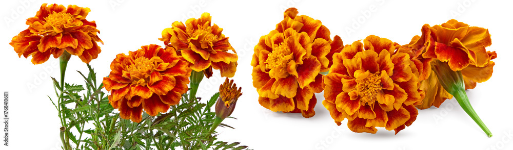 Orange Marigold flower (Tagetes erecta, Mexican marigold, Aztec marigold, African marigold) Tagetes erecta flower isolated on white. clipping path