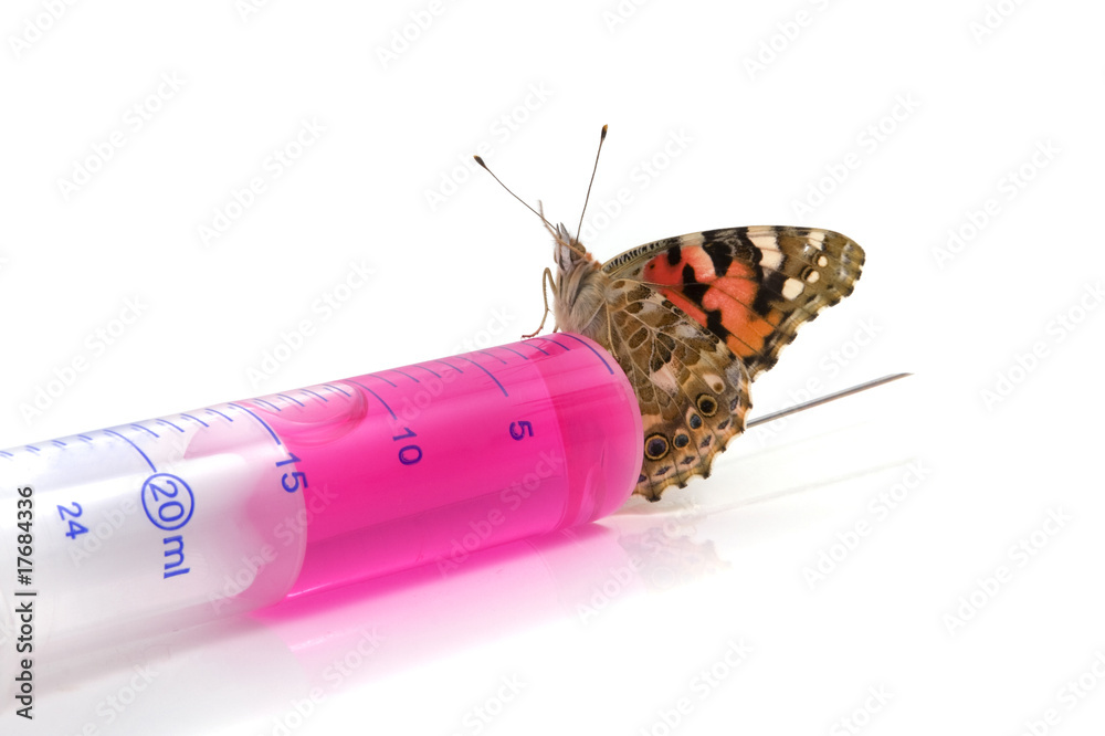 Butterfly is sitting on a syringe