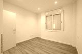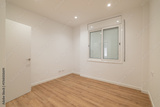 Empty room with white walls and wooden floor. A window allows natural light to enter. The door is closed, creating a minimalist and spacious atmosphere.