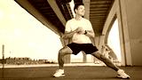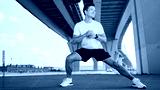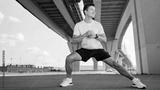 Fitness enthusiast stretching under a bridge while preparing for an outdoor workout session