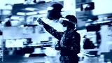 Air defense commander using radar systems and virtual reality tech to detect incoming ballistic missiles. Army soldier in base of operations scanning enemy rockets using VR headset gear, camera B