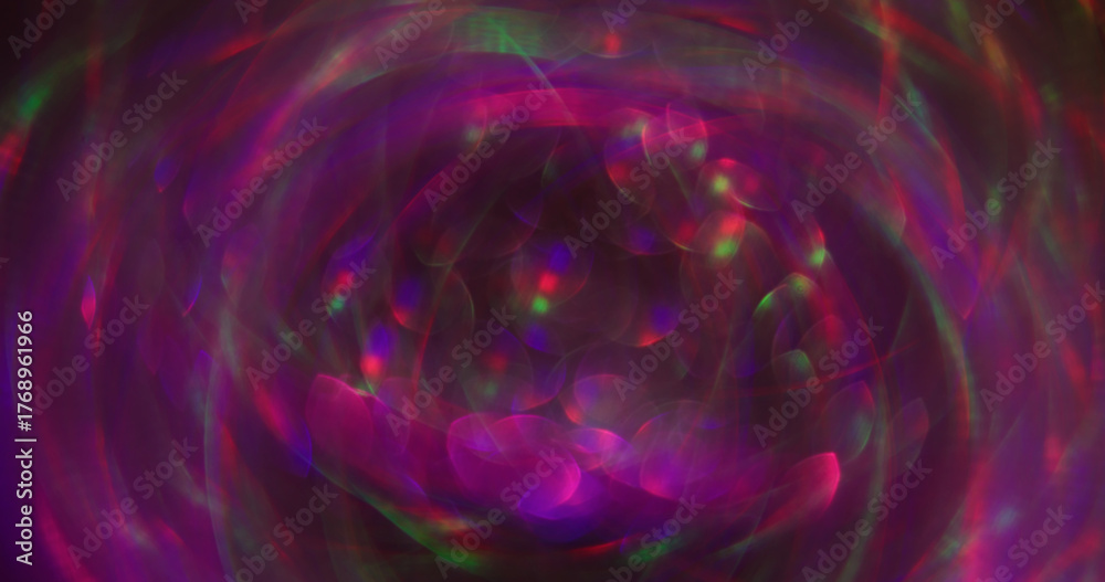 Bokeh light. Vibrant particles. Blur purple pink neon color illuminated gleam shimmer round texture floating on abstract art background.