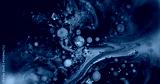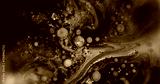 Oil circle. Bubble collagen. Defocused yellow purple green color paint glitter acrylic water sparkling fluid on abstract art bokeh background.