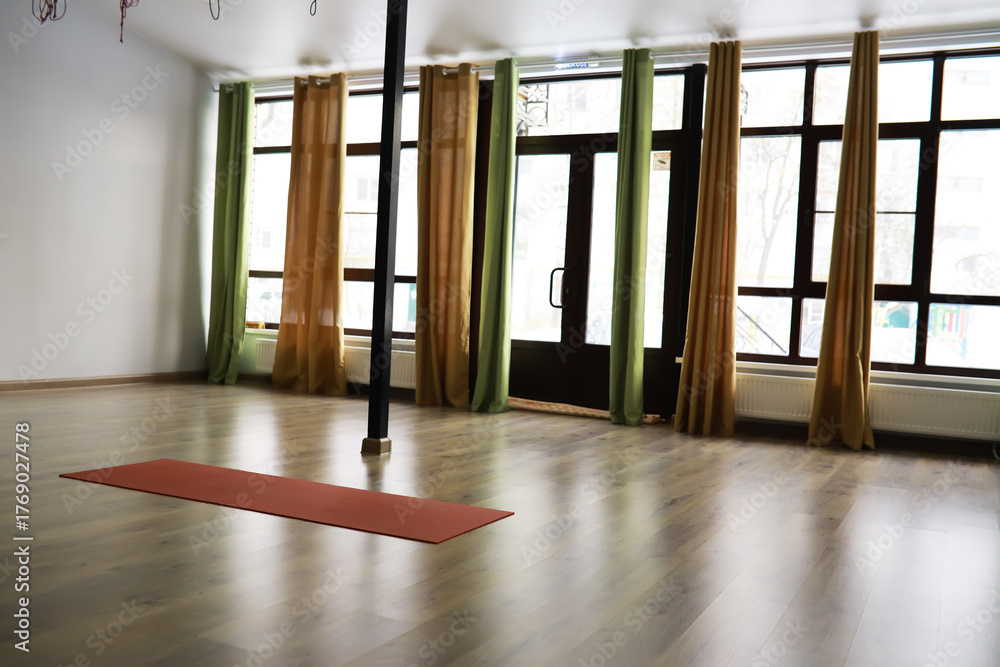 Modern Dance Studio with Floor-to-Ceiling Windows and Pole