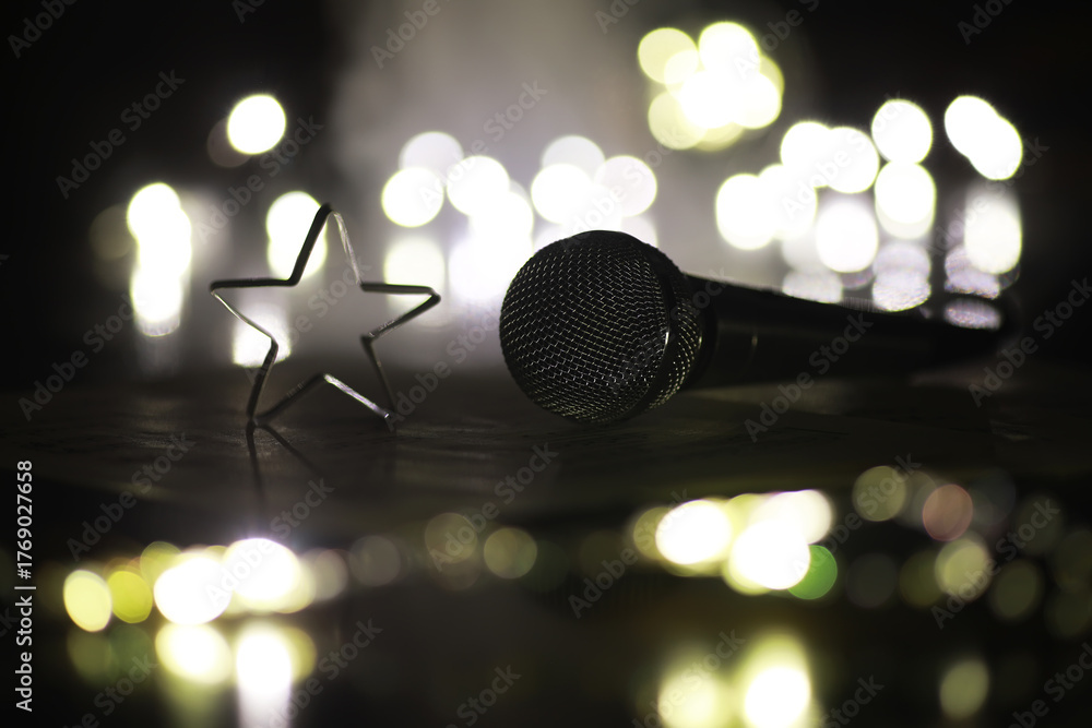 Microphone and Star Decor Against Bokeh Lights - Music and Performance Concept