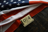 Patriotic July 4th Celebration with American Flag and Wooden Calendar Blocks