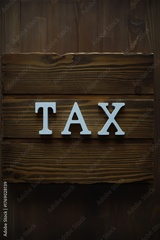 Wooden Background with Tax Letters: Rustic Financial Concept Stock Photo