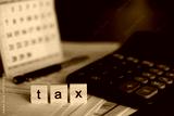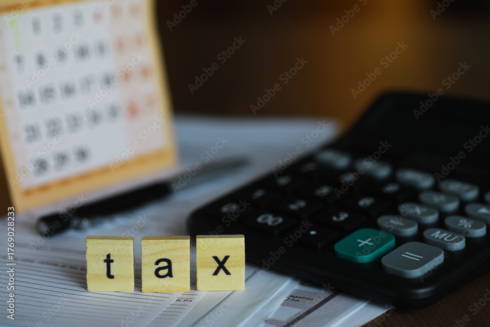 Tax Preparation Concept with Calculator, Calendar, Documents, and Tax Blocks