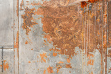 Matal material sheet with rusty surface due to weathered erosion. Background and textured, close-up.