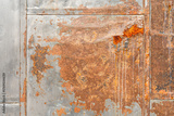 Matal material sheet with rusty surface due to weathered erosion. Background and textured, close-up.