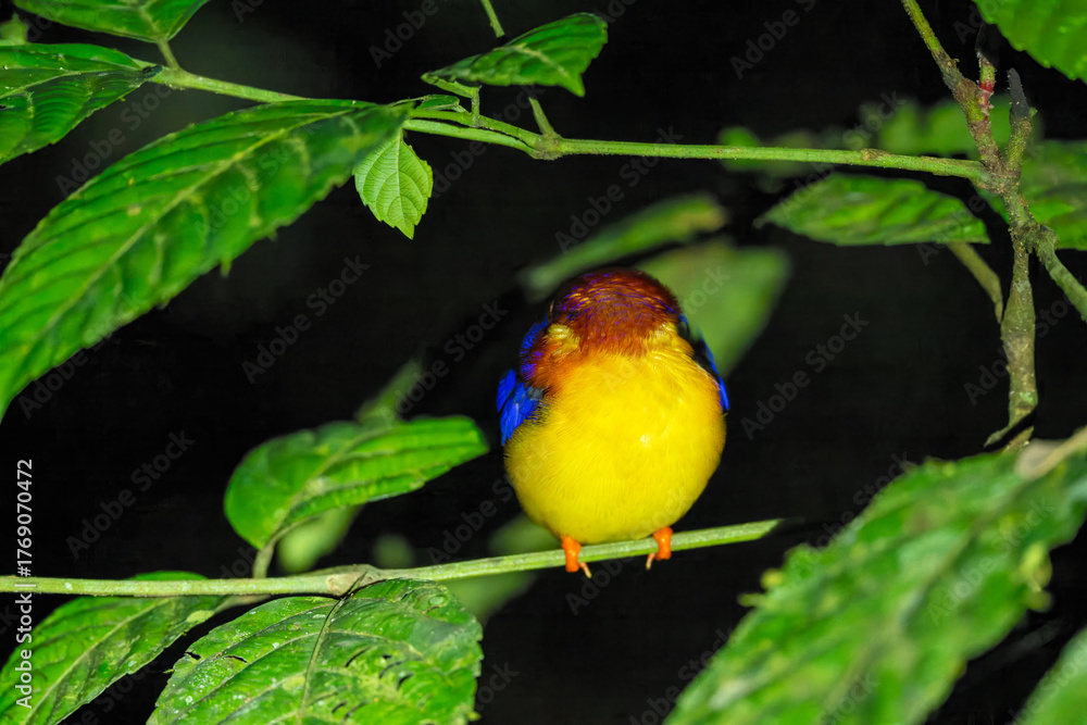 Colorful Kingfisher Resting on Branch at Night