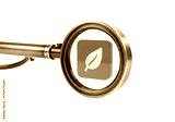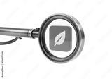Isolated leaf icon in a magnifying glass, focusing on environmental protection concept