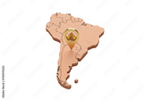 Isolated South America map with location pyramid marker, continent countries political