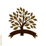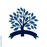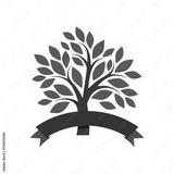 Tree with ribbon logo isolated on white background