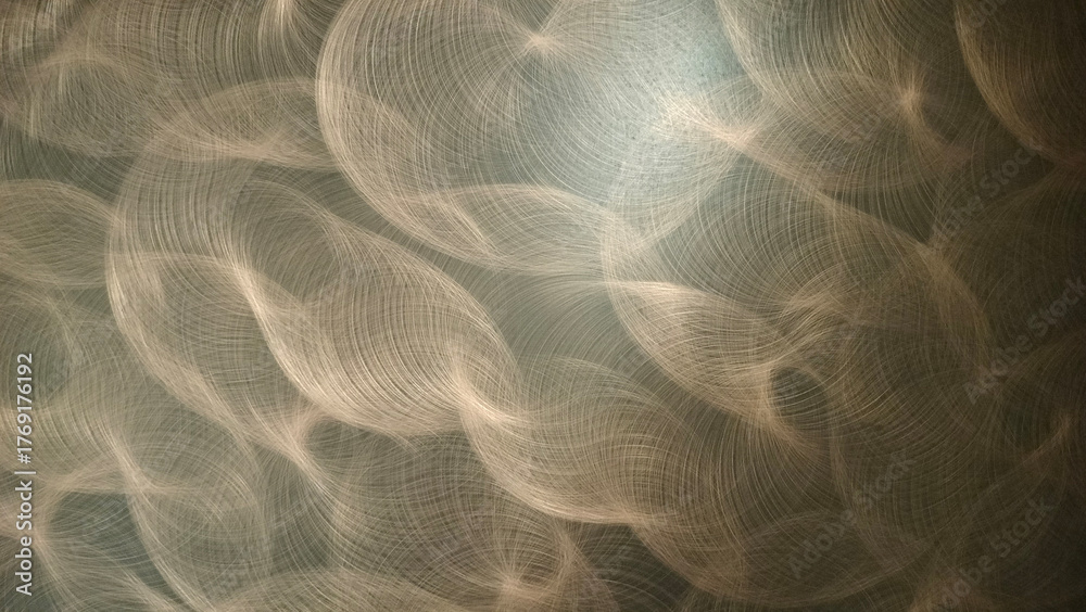 Abstract metallic texture with circular brushed pattern and soft glowing light. Artistic swirl design background with smooth curved lines and modern industrial feel, luxury design.