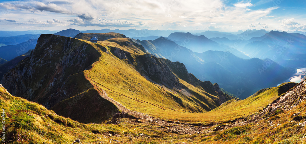 Summer in Eisenerzer Alpen in Austria Styria, Mountain landscape panorama in Reichensteinhutte
