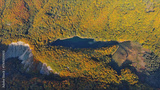 Biogradsko lake surrounded by mountains covered with bright autumn trees