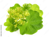 Food and Health - Ladys Mantle Leaves and Blossom on white Background