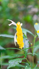 Pachystachys lutea (golden shrimp plant, lollipop plant, bunga lilin, kembang lilin, udang emas, Air mancur). This plant has uses for various ailments like fever, colds, and pneumonia.