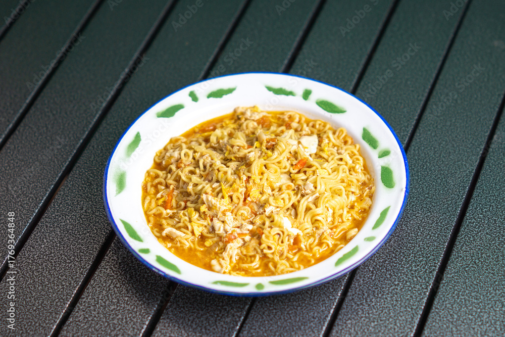 Mie nyemek. An Indonesian noodle dish cooked with a little water, beaten egg, and thick sauce.