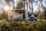 Family vacation travel RV, holiday trip in motorhome, Caravan car Vacation. Beautiful Nature Norway.