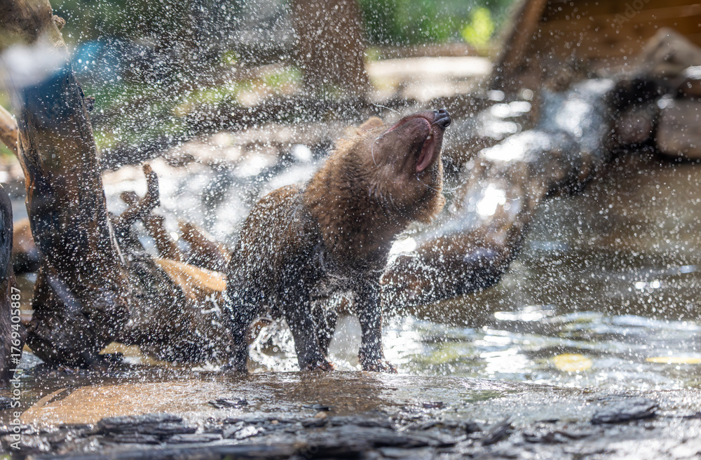 Bush dog (Speothos venaticus) in nature. Bush dogs are found from Panama in Central America, through much of South America.