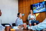Confident businesswoman discussing a real estate development project with her multiracial colleagues in a meeting.
