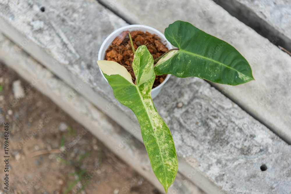 Closeup to New hybrid plant Philodendron Jennifer var in the pot