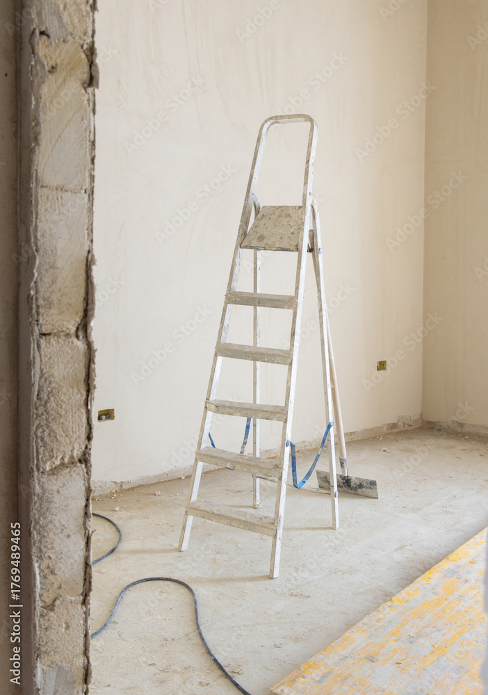 Room under construction or renovation with ladder, Unfinished wall and floor. DIY home Remodeling