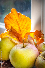 Windfall apples,sweet and crisp eaters,and Autumn leaves,Worcestershire,England,United Kingdom.