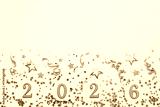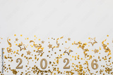 2026 Happy New Year golden glittering numbers top view, flat lay.