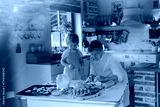 Family holiday baking with grandma in cozy kitchen.