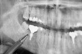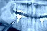 Doctor learning Panoramic dental X-Ray of humans teeth with Teeth implant. Dental post. Diseased teeth with dental fillings, crowns, sealants.