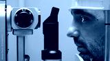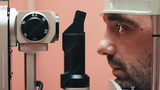 Male patient undergoing a detailed vision examination using advanced ophthalmic equipment, focusing on eye health and diagnostic procedures in a clinical setting