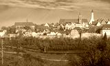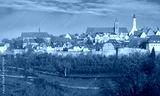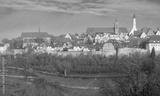 Panoramic view of the historic skyline of Rothenburg ob der Tauber in Rothenburg, Germany on a clear winter day
