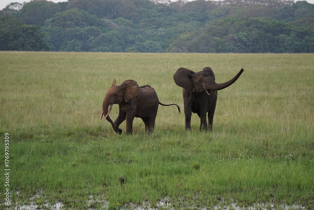 African Elephants In Savanna Grasslands