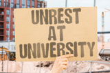 "Unrest at University" Tensions flare as protests erupt following campus shooting. UNREST. UNIVERSITY. PROTEST. VIOLENCE. STUDENTS. TRAGEDY. SOCIETY.