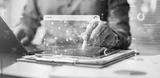 ai, automation, artificial intelligence, A professional using a digital tablet with AI interface, symbolizing artificial intelligence, data analytics, automation, and innovative technology solutions.