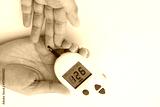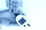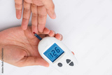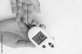 Woman's hands checking diabetes and hyperglycemia with digital blood sugar meter. Healthcare and medical concept